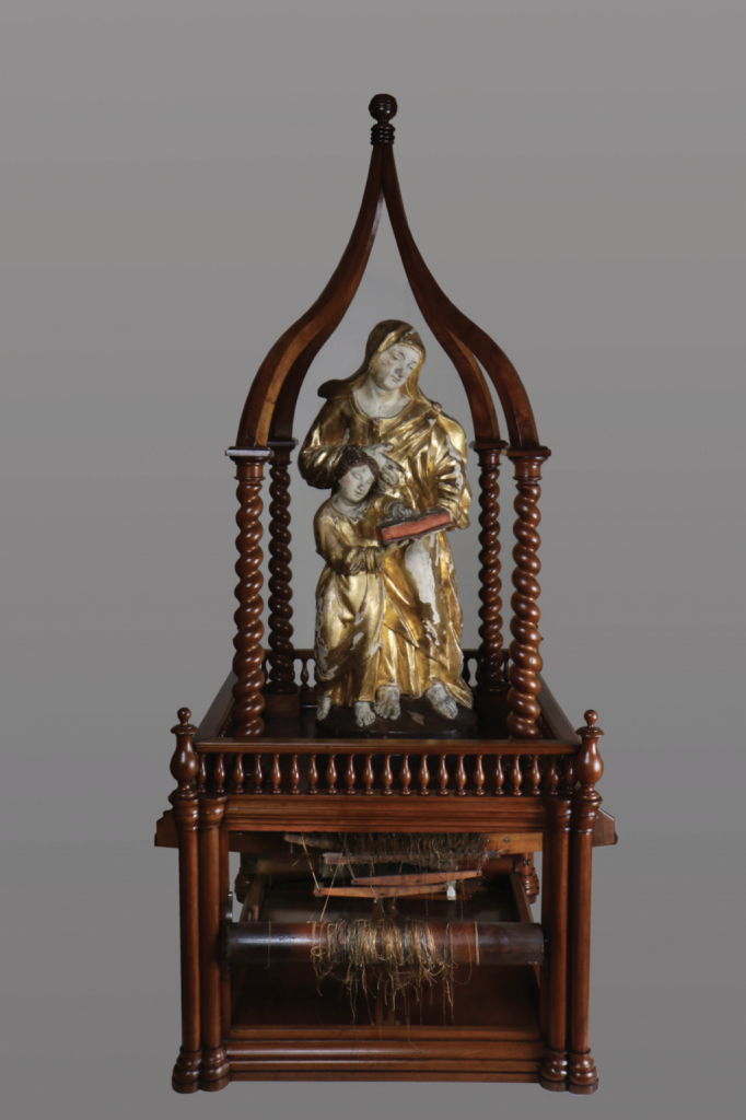 At Roanne, a statue of Saint Anne has been chosen. Belonging to the Musée Joseph Déchelette, the work was placed in the church of Sainte-Anne in the 1990s after being exhibited in the Écomusée du Roannais textile museum.