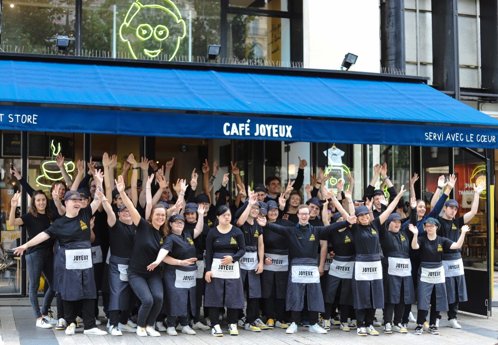Café Joyeux is the first French café-restaurant family that employs and trains people with mental and cognitive disabilities in the heart of our cities (Paris, Rennes, Bordeaux, Tours, etc.) in France, and even further away in Lisboa.